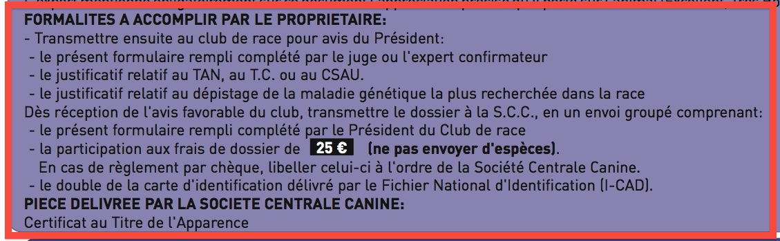 Pour cela, ils devront en revanche: obtenir un qualificatif minimum de Très Bon en exposition nationale, passer leur TAN, réaliser leur identification AD