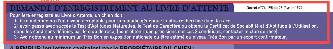 ", comme le précise Anne-Marie Class. " Cela n’est pas désobligeant et ne peut apporter que de bonnes choses à la race."" Malheureusement, des éleveurs peu scrupuleux ne précisent pas "LOF mais inscrit au livre d'attente" afin de faciliter la vente de leurs chiots. Lors de leur achat, les propriétaires n'apprécient pas de recevoir des papiers" vierges" sans en être avertis. C'est un manque de sérieux et de transparence regrettable " tient à souligner Marie Claude Dauvois